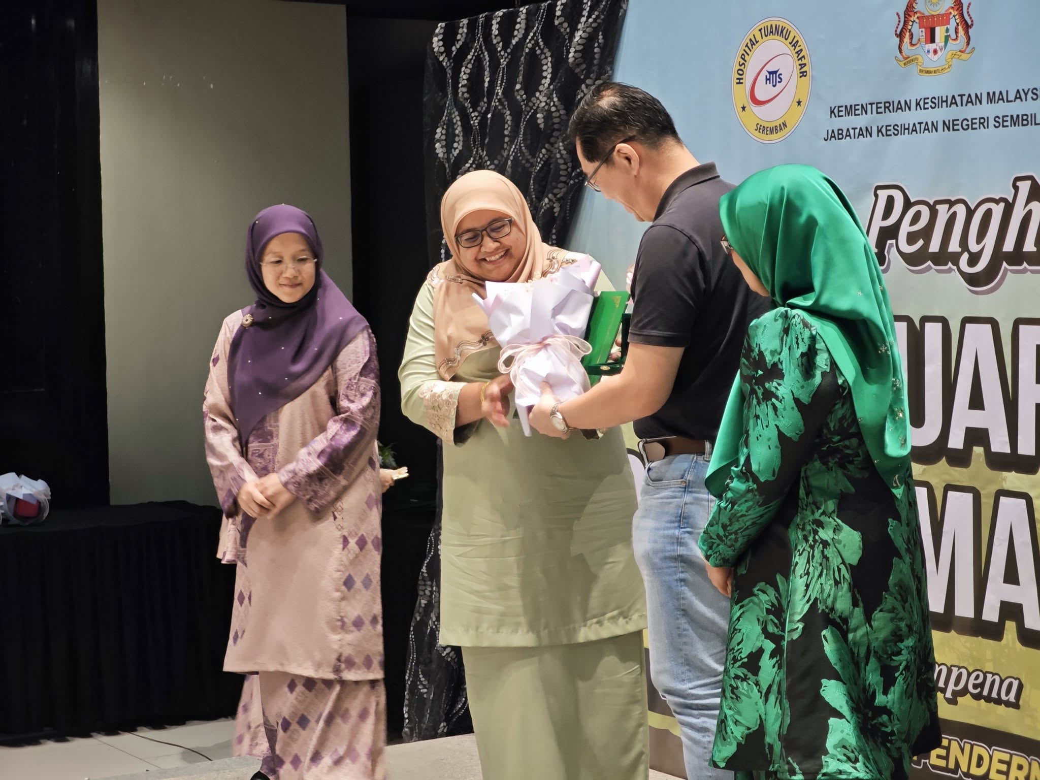 Majlis yang berlangsung sederhana ini telah disempurnakan dengan penuh hormat oleh Yang Berusaha Dr. Azizah binti Abdul Samat, Timbalan Pengarah Kesihatan Negeri Sembilan (Perubatan) Jabatan Kesihatan Negeri, Negeri Sembilan bersama-sama Yang Berbahagia Dato’ Dr Zaleha binti Md Noor, Pengarah Hospital Tuanku Ja’afar, Seremban, dan Yang Berusaha Dr. Tengku Alini binti Tengku Lih, Ketua Unit Perolehan Organ Hospital (UPOH) Hospital Tuanku Ja’afar Seremban.